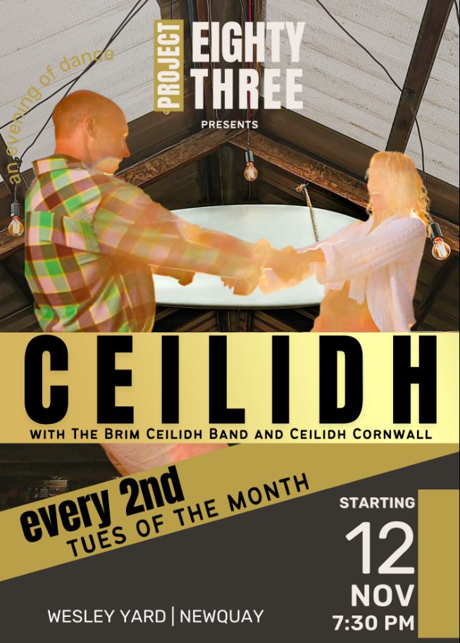 Project Eighty Three, along with The Brim, are holding public ceilidhs with FREE entry in Newquay on the second Tuesday of every month from November to March. Here are the dates: